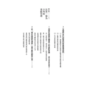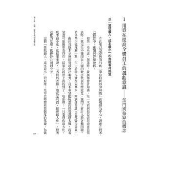 ◎在阿米巴經營裡,每位員工都是主角,是權責與利益一致的企業主人。公司上下能根據各自的職責分工,實現市場導向的成本目標,以最低成本獲得最大利潤,造就收益率驚人的企業。