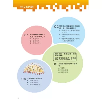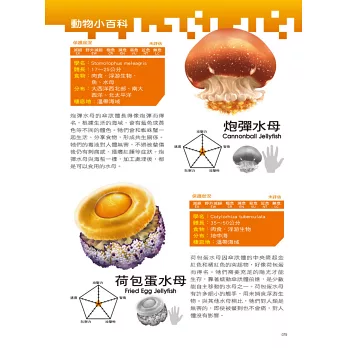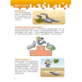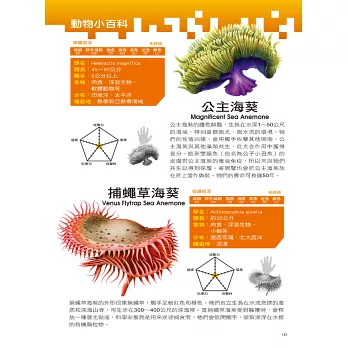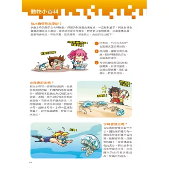 設有「動物小百科」單元,特別介紹刺絲胞動物及電鰻目動物的構造與小常識,以及僧帽水母、海蜇、紅珊瑚、公主海葵、圭亞那裸背電鰻、電鯰等動物的超炫常識,讓小朋友有系統的學習。