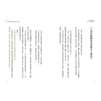 「凡事豫則立,不豫則廢。本書告訴我們做計畫的重要性,為什麼做、做什麼,以及如何做,是一本非常實用的成功指南!」──孫易新博士,孫易新心智圖法培訓機構創辦人