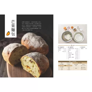 為了讓讀者更容易取得原料,配方主要使用台灣在地食材,減少麵包製作上的限制,讓麵包有更多元在地性的變化。麵包的發酵有基本發酵、中間發酵、最後發酵,並透過直接法、中種法、液種法等,不同的麵包製作方法,每種製法再加上冷藏法的運用,變化製作的流程,讓讀者可以在繁忙工作中,運用有限的閒暇時間,找出最適合自己的麵包製作方式。
