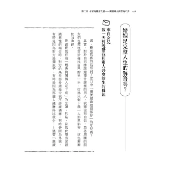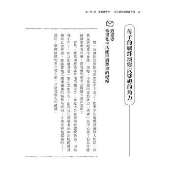 「不要只顧著不滿,我為何老是和娘家的人走得比較近,而是應該回頭想想,為什麼我會對你和你的家人緊閉心房。」