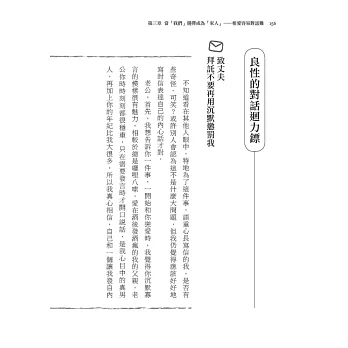 「透過這本書,我學會了該如何解開我與家人間僵持的不幸,也幸運地學會了不再猶豫該對同事說出什麼樣的建言。」