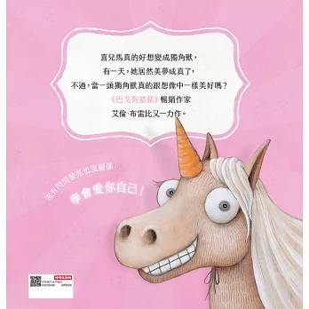 自覺平凡的喜兒馬一直夢想著要當獨角獸,一天,碰巧翻倒的粉紅色油漆居然讓她美夢成真了!