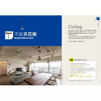2.不做天花板或只做必要的局部天花,30幾坪的房子可以省下10萬之多!但少了天花板,管線怎麼走才順?