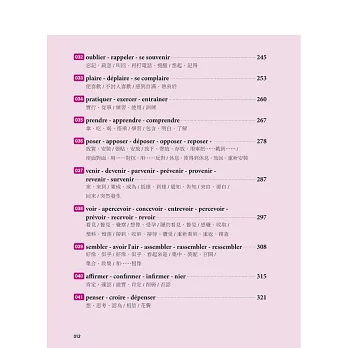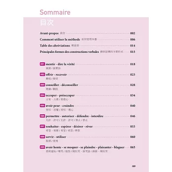 本教材選擇的動詞是基於其意義與結構的多樣化。但並非所有的動詞都收錄於本教材之中,對我們來說,那是一項不可能的任務。我們選擇動詞的標準有二:涵蓋某個語意範圍的動詞,如「mentir - dire la vérité」以及具有相同字根的動詞,如「porter - apporter - emporter - déporter...」。同樣地,我們並沒有提供書中每一個動詞的所有動詞結構,只是一些我們認為最常用的動詞結構。