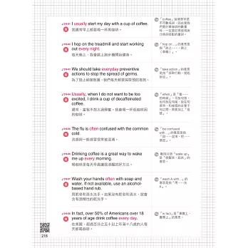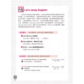 再讀補充 ─ 每句暖身練習皆附有tip補充,熟讀句子後行有餘力再讀補充。