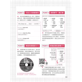 本書除附贈免費的MP3光碟外,也可以使用虛擬點讀筆練習職場上最重視的聽力和口說,只要掃描內頁的QR code就能夠隨時聽取音檔,也可以依照自身的學習需求調整語速和重複播放!