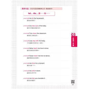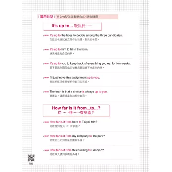 想開口說英文,不是只要會文法就夠,最重要的是外國人天天在用的句型,而英文句型像數學公式一樣,只要熟記基本公式,再配合情境將需要的單字替換進去,就是生活中一定會聽到、說到的句子。