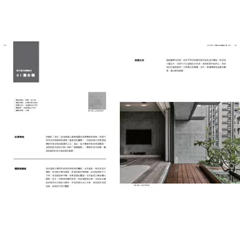材質選用是立面設計的精髓,從選擇材質開始,為設計師嚴選石材、磚材、塗料、水泥、木素材、板材、玻璃、壁紙……等8種立面材質,從材質特性、種類介紹到挑選方式,一應俱全。邀集善用各式材質的設計師現身說法,以經典立面講解每種材質的造型與工法,期待設計師們能從中找到創新立面的靈感。