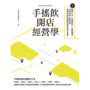 有系統、策略地思考開店過程中該注意的事項與環節,提供手搖飲店鋪經營必備戰鬥七力:「品牌力」、「商品力」、「營運力」、「設計力」、「店鋪力」、「活動力」、「服務力」的經營操作。