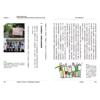 最後要感謝的是本書的作者,他們每一位都是案例背後的推手或文武雙全的參與者,沒有他們和其他案例中的主角,就沒有這些精采的故事與成就。記得二○一五年底,我受邀請在學術交流基金會發表期末的成果報告,坐在觀眾席中的台大公衛所詹長權教授問了一個讓我至今仍印象深刻的問題,他問我:「你覺得這些案例會持續多久?」其實我自己也很想知道,這些當時甚至才幾個月大的行動,究竟有多少的持久性?如今,幾年之後,他們不但大多數都還健在,甚至都成功地拓展,組織成員也不斷地增加。這些案例的成長與茁壯不僅令人驚艷,也讓我們對城市共生的行動感到了希望。