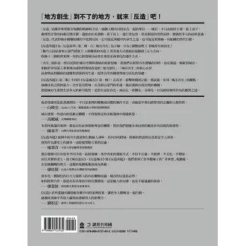 《反造城市》原本並沒有規劃續集,之所以會有現在這本第二冊,其實必須感謝南機拌飯與地下勞動合作社的李仲庭。有一天仲庭越洋傳了個簡訊給我,看能不能放幾本《城市造反》與《反造城市》在他那裡賣,結果與出版社聯絡後得知書都賣完了,幫不了忙。書賣完了,怎麼辦?若只是再刷的話,可能賣不完,最好有些新的內容,一路討論下來就這樣開始了《反造再起》的規劃。左岸文化大部分的出版品都是國外大師的經典作品,我們這一系列既不「正」派也不太正經的書得以一再出版,還得感謝編輯林巧玲與總編黃秀如的賞識與大力支持。