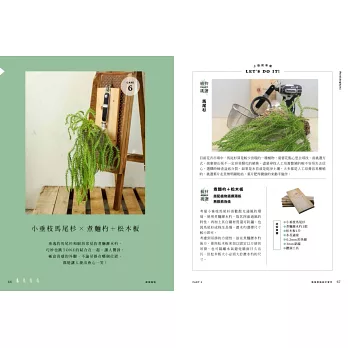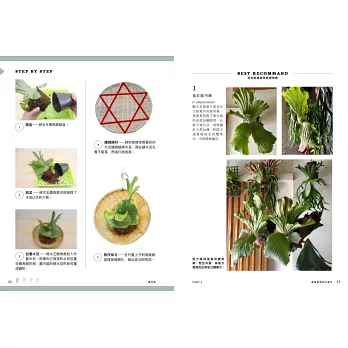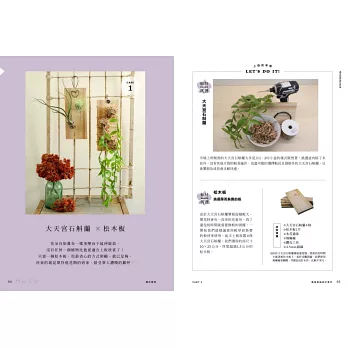 此外,目前在坊間,愈來愈多公司、店家、或是私人住宅,利用上板植物來點綴原本枯燥的牆面,書中也收錄了14個精彩案例,他們大方的分享作品美圖,以及打造的過程心得,大家可以藉由這些案例觀摩,激發出更多上板靈感。以前種過的植物,或許可以動動手將它上板,用另一種角度去欣賞;以前沒嘗試過板植方式,就嘗試著一起來做做看,讓周遭環境也能展開有別於以往的新奇氛圍!