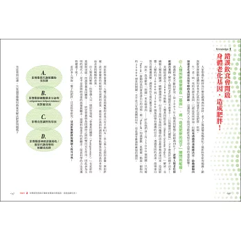 研究基因學的作者林佳靜繼《吃出高中生的新陳代謝》後,藉由解構人體基因和身體運作,對讀者提出更深入但具體易執行的方法和建議。本書更打破許多過往錯誤的健康觀念和迷失,讓讀者重建新的健康管理之道。