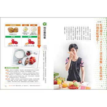 一般人都懂得「飲食均衡」、不偏食、多吃蔬果的道理。但是如何具體落實在每人每餐如何選對食材、吃對分量,才是本書最棒的地方。此外,特別值得一提的是本書附帶贈送112張「4321精瘦食材卡」。貼心地為忙碌的現代人提供每日三餐不同變化的食材內容。讓吹灰之力吃出健康和美麗。
