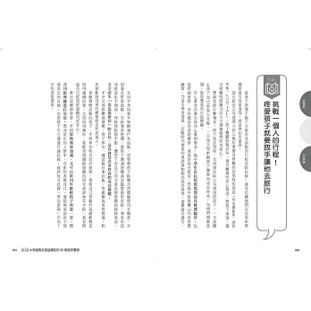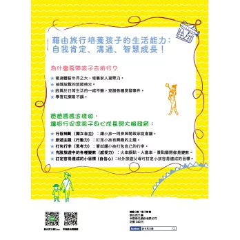 當然,本書第二章的「旅育」心法與第三章的「旅育」要領,提供諸多實作參考,像是包括訓練孩子自訂旅遊行程表、親子共同參與旅行會議,從而還可藉此得到凝聚家庭情感,甚或提升孩子生活技能的額外紅利。你可以當本書是為「旅育」的教戰手冊,惟採取行動之前,它已然重新活絡了你對「帶著孩子去旅行」的想像。