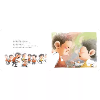 ◎「一看到書名,就立刻吸引我了。在大人的教導下,孩子們心裡通常都會認為:「不可以打架!」但上小學後的孩子,難免會和同學發生爭執,這本繪本生動描寫出孩子在學校和同學相處的狀況,透過繪本的引導,也讓我更知道該如何面對孩子的問題。」