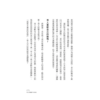 男女相處,一切來自了解。女人不一定要別人取悅,先取悅自己才能茁壯自己。──知名節目主持人 朱衛茵