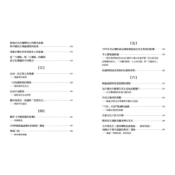 全書分六部分及附錄,收文33篇,充分展現林毓生於深思中完成「中國意識的危機」與「中國傳統的創造性轉化」系統分析之成果。