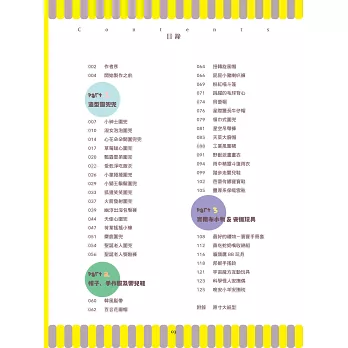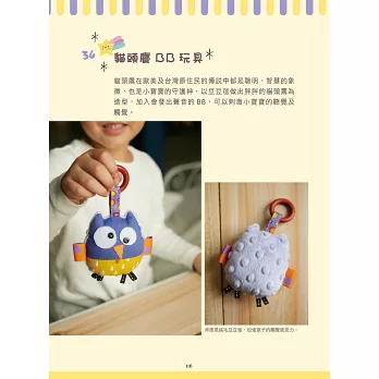 作者從七年的育兒過程中,設計製作出數不清的布小物。從孩子的角度出發,新生兒用品、安撫及知覺發展玩具、遊戲時的防汙衣…等,最貼近生活用途,樣樣都派得上用場。