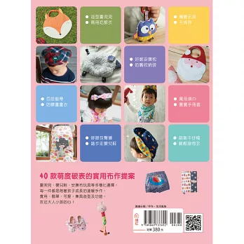 簡單機縫、手縫也能輕鬆完成的限定嬰幼兒布手作,從收服口水的多功能口水巾圍兜、打屁屁不會疼的包臀褲、不讓爸媽抓狂的防髒遊戲衣,一覺到天亮的安撫布玩具…等,40款屬於心愛寶貝的創意提案,攻佔大人小孩的心!