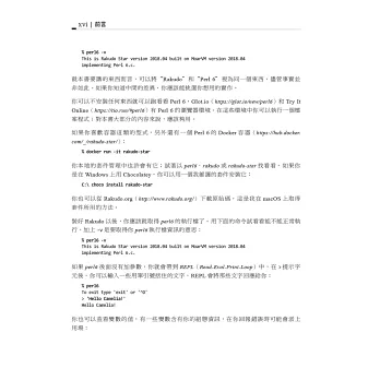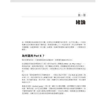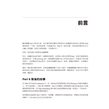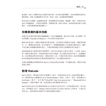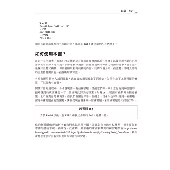作者brain d foy為這新語言提供了詳盡介紹。本書的每一章節都包含練習題,幫助你在學習的過程中,同時練習學到的新知,其它書籍可能會教你如何用Raku寫程式,而這本書將可以讓你成為Raku程式設計師。