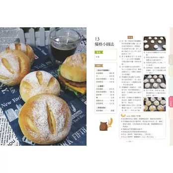 本書食譜,Judy 使用了液種、中種及隔夜中種等方法來製作麵包,這是我最愛使用的手法,完成的麵包室溫放三天仍然柔軟有彈性。這些都是我平常所使用,希望也可以讓大家在製作麵包上更有成就感。
