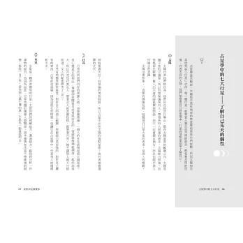 ◎天空老師擅長用生活化方式敘述艱深的占星理論,此書主題明確的聚焦在愛情,從感情的初期到步上紅毯,循序漸進的從行星來解說過程的趣味,搭配每章節使用塔羅牌占卜,不會讓人看的頭昏眼花,反倒能樂在其中!——獅子與貓-Mihos&Felina