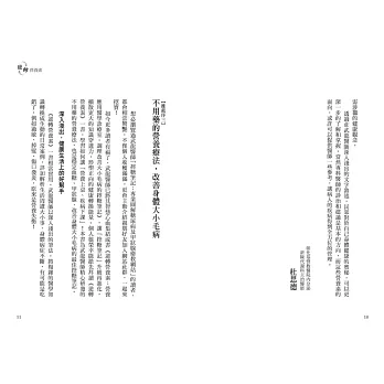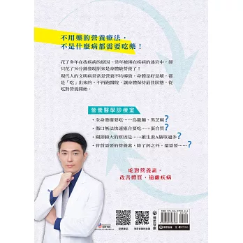 ☆透過武龍醫師細心的案例解析,了解營養素和疾病的關係,迅速找到改善症狀的切入點,從而幫助病人回復正常的健康狀態。──彰化基督教醫院內分泌新陳代謝科主治醫師 杜思德醫師