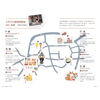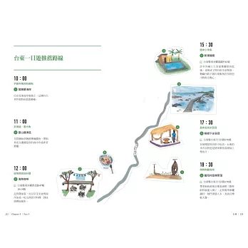 另外,特別規劃彰化、台南、台東、金門、馬祖、蘭嶼這六個城市,一日或半日深度旅遊路線,由插畫家舒皮手繪具當地特色景點的可愛地圖,不用動腦跟著狗狗就能暢遊台灣人文風情。