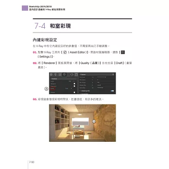 書中以完成整體室內設計為目標,透過室內設計流程,逐步加入必備的SketchUp技巧、V-Ray渲染彩現效果,以及LayOut。對於一般人來說,可以實現彩繪居家設計的夢想,而對於室內設計師來說,則能同時兼顧設計品質與效率,契合快速提案的需求。最後,更特別納入SketchUp的VR、BIM應用等熱門主題。