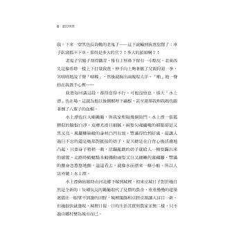 隨著「嘿」地一聲喊,水缸面上的水「嘩啦」一聲蕩出一大片,但水缸卻被我爸穩穩抱起。接著他就叉開兩條長長的大腿,像頭蠢笨的巨獸,慢慢向我家屋門口挪去。