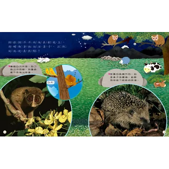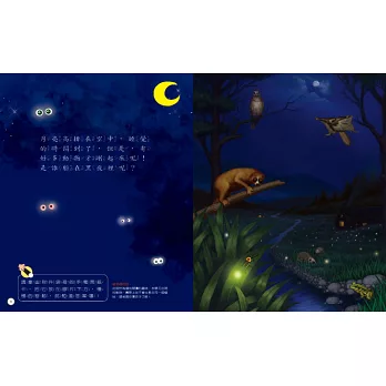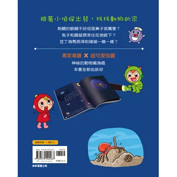 在大自然裡面,「尋找」這件事顯得格外重要,因為大部分的動物與昆蟲會躲藏起來,在正確的時間和地點才會出現。書中區分三大情境:夜晚、地底和海裡,同步讓孩子理解動物的住所、出現的時間,與隱藏起來的絕招。爸媽可以引導孩子了解,具備動物習性的基本知識後,未來才有機會在自然環境中發現牠們。