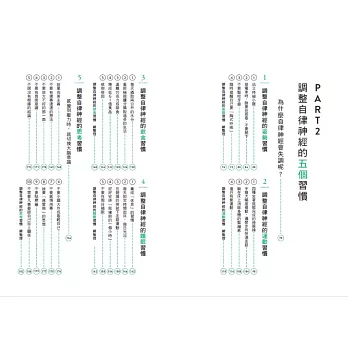 本書以不花錢、不吃藥、不麻煩的居家自療方式改善失調的自律神經,從改正「姿勢」、「運動」、「飲食」、「睡眠」、「思考」等五大習慣來重建身體的規則,導回健康的生活。