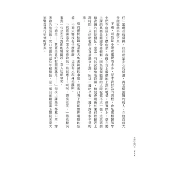 本書藉安寧病房現場長期報導,可深入了解國內安寧緩和醫療團隊,如何默默在為病人的最後一哩路做最大的努力,希望人們可以在醫療體系下,不僅能有尊嚴地活,甚至能安心地邁向另一世界。