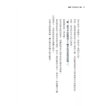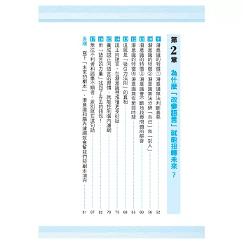 例如,當我們對自己說「真舒暢」,潛意識就會做出讓我們感到暢快的反應;當我們說出「覺得好累」,潛意識就會誘發一些不良的化學反應,讓我們感到疲倦。