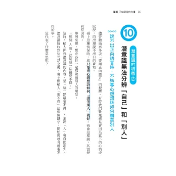 具體來說,潛意識具有以下四大特徵,只要加以善用,以正向語言來實踐,就能扭轉我們的人生!