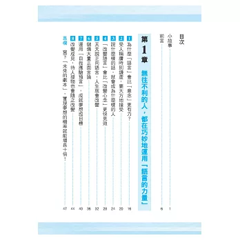 只要我們善用潛意識的特徵,在腦中具體勾勒目標,並化為正向語言說出來,潛意識就會展開搜尋,進而使我們察覺身邊充滿各種成功機會!