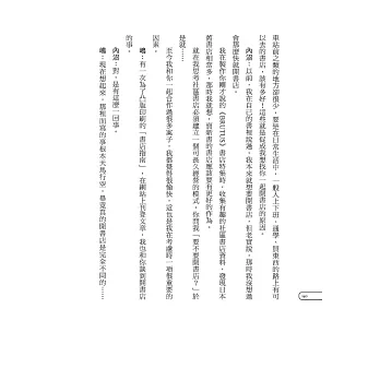 ◎介紹作者到書店尋找靈感的方式,並針對現行經營獨立書店等生態有獨到的見解