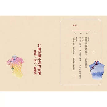 這本書前半部讓人學習到旗袍的典故與知識,讀到後半部壓軸的人物特寫時,那些旗袍忽地有了溫度,立體鮮明起來。我想,那是因為透過細膩的訪談,我們得以在昱伶的筆下窺見受訪者,那些人與旗袍之間的故事。