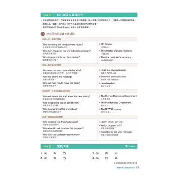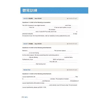 本書利用實戰題另外設計了「聽寫訓練」,聽寫訓練是培養基本聽力實力的最佳學習方法,在解題過程中同時做訓練的話,可更快地提高分數。此外,本書的實戰題全數改編自多益考古題,藉由聽寫訓練熟悉出題模式,也能在實際考試時預測題目內容!