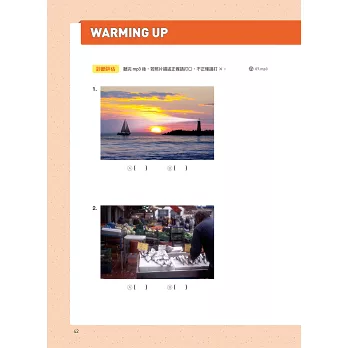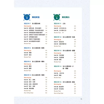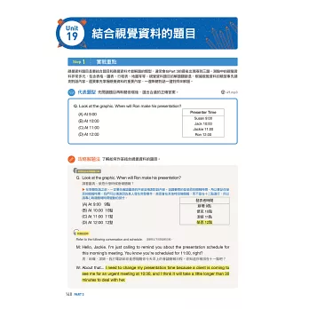 在正式進入多益聽力教學前,為了讓考生能夠理解各個必考形式,本書規劃了「Warming Up」單元。透過此單元,能讓考生更理解各類題型。一一打下良好的聽力基礎後,就能學會作答複雜多變的聽力題型!