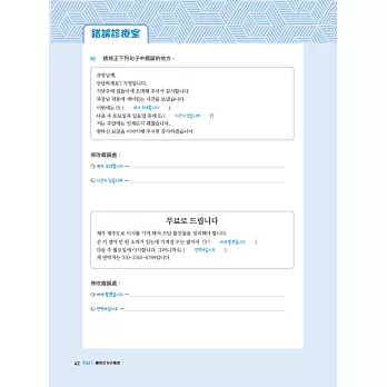 本書在〈錯誤診療室〉的小單元,歸納出學習者的常見錯誤、考前必背的表達句型等重點,上考場前再瀏覽一次,幫你把粗心的機率降到最低!