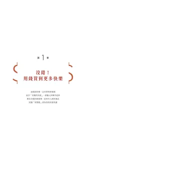 除了理解金錢能如何有效運用在真正有助於快樂的活動上,本書也融入了許多有關投資與理財方面的智慧。──安納金/財經作家