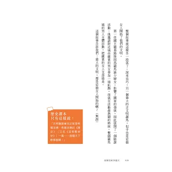 歷史故事要迷人,須有幾個特色,包括主軸明確、情節曲折、篇幅精簡、措辭淺白、結局有趣、與時局呼應、與日常連結等。歷史課本很難具備這些特色,卻是造就像本書這樣迷人歷史書的機緣。提醒大家,歷史課本還有好多句話……