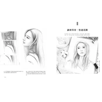 ◎運用塗、抹、擦等技巧,一支鉛筆畫出層次分明,栩栩如生的美女。