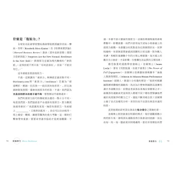 「邦妮著重在逐漸增加復原力的方法,以應付充滿挑戰的今日世界。她提出策畫完備、以科學為依據的方法,讓大家隨時恢復活力。本書很適合健康照護與其他服務產業採用,尤其是仰賴團隊合作拿出最佳表現的組織。微復原力是我們因應21世紀的挑戰與契機時,應該提出的21世紀優秀解決方案。」──貝爾納•泰森(Bernard J. Tyson),凱薩醫療機構(Kaiser Permanente)董事長與執行長