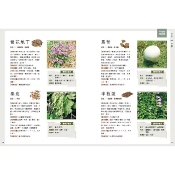 ★剖析每一種藥材的植物型態、特性、藥用部位、功效、用法、用量、小偏方以及藥膳食療方。