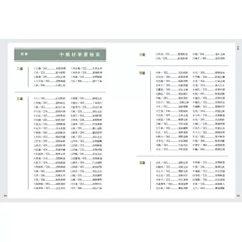 遇到不認識的中藥材名,或需要尋找針對病症使用的小偏方和食療方時,只要算出中藥材的第一個字筆畫,就能依據索引快速找到資料。讓美好的本草中藥,成為每個家庭生活中隨手可得又不傷身的天然藥物。