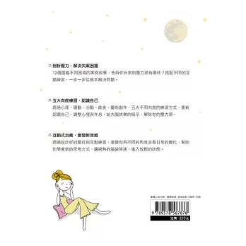 心中的苦,只有自己知道。這不是生理層面的苦,是心靈不夠自在的苦。在本書12篇章的開頭,舉例12種民眾內心的惆悵與失落,是對人生的嘆息,是對當下不自由的思索。透過此書五大向度練習:認識內在心靈,與身體對話,跟環境周遭建立連結,與他人產生共鳴,以種種行動及作品表達及回饋,進而活化大腦,增添更多美麗的色彩。在第五向度藝術創作裡,我要求民眾嘗試創作練習,多與他人表達交流。整理書稿的同時,讓我想到:是不是該自我表率,除了本書的文字內容外,多添加藝術創作的部分呢?於是我繪製本書插圖,希望跟讀者們有更多連結。一旦開始啟動,由於大腦正向回饋的緣故,就愈畫愈起勁,最終成了本書每一頁的小小插圖。在這創作過程中,真的也感覺到內在更多的心靈收穫呢!